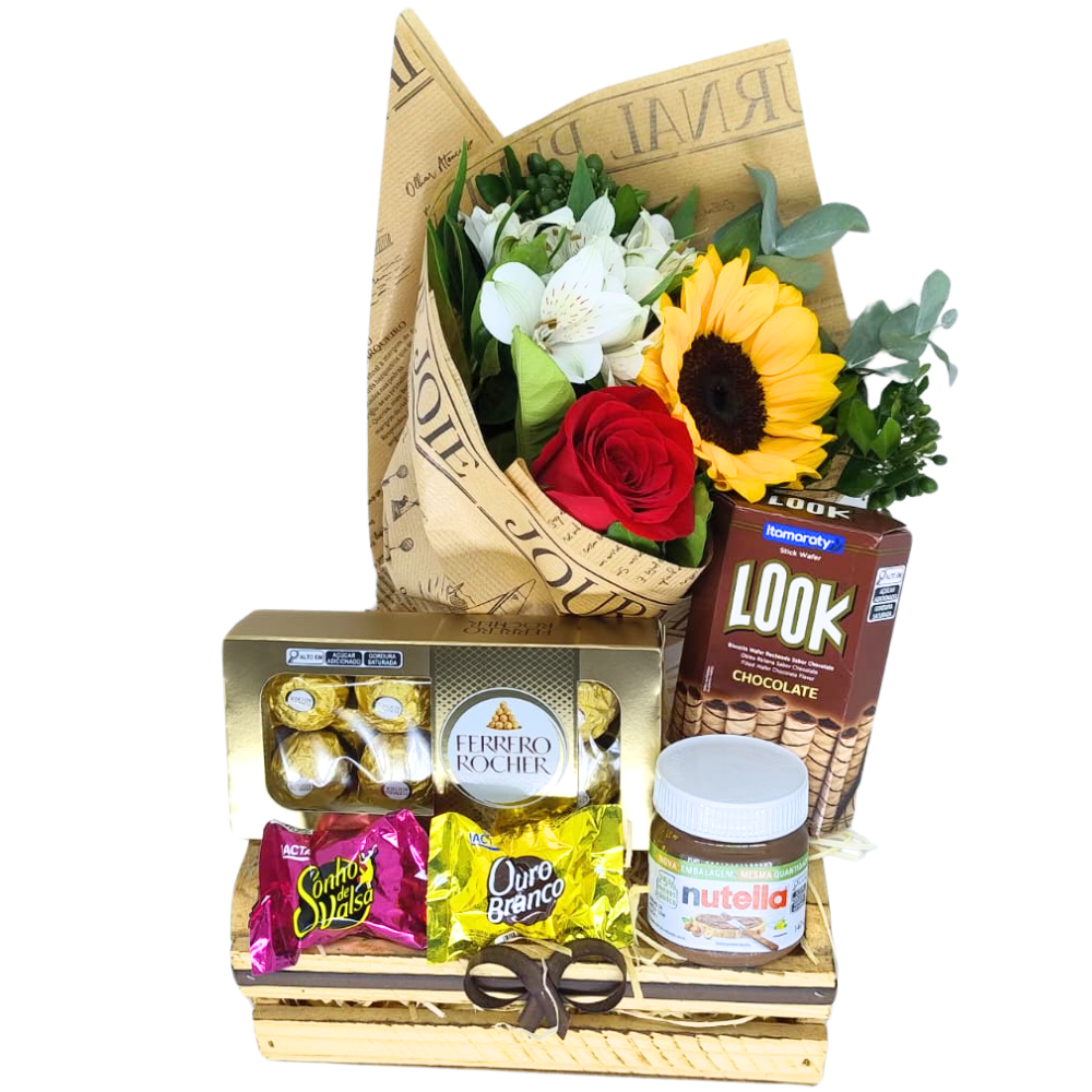Um presente que combina o doce sabor do chocolate com o encanto das flores! A Cesta de Chocolate com Rosa e Girassol transmite alegria, amor e carinho em cada detalhe. Um gesto colorido, afetuoso e delicioso — entregue com rapidez e cuidado em toda Jundiaí.